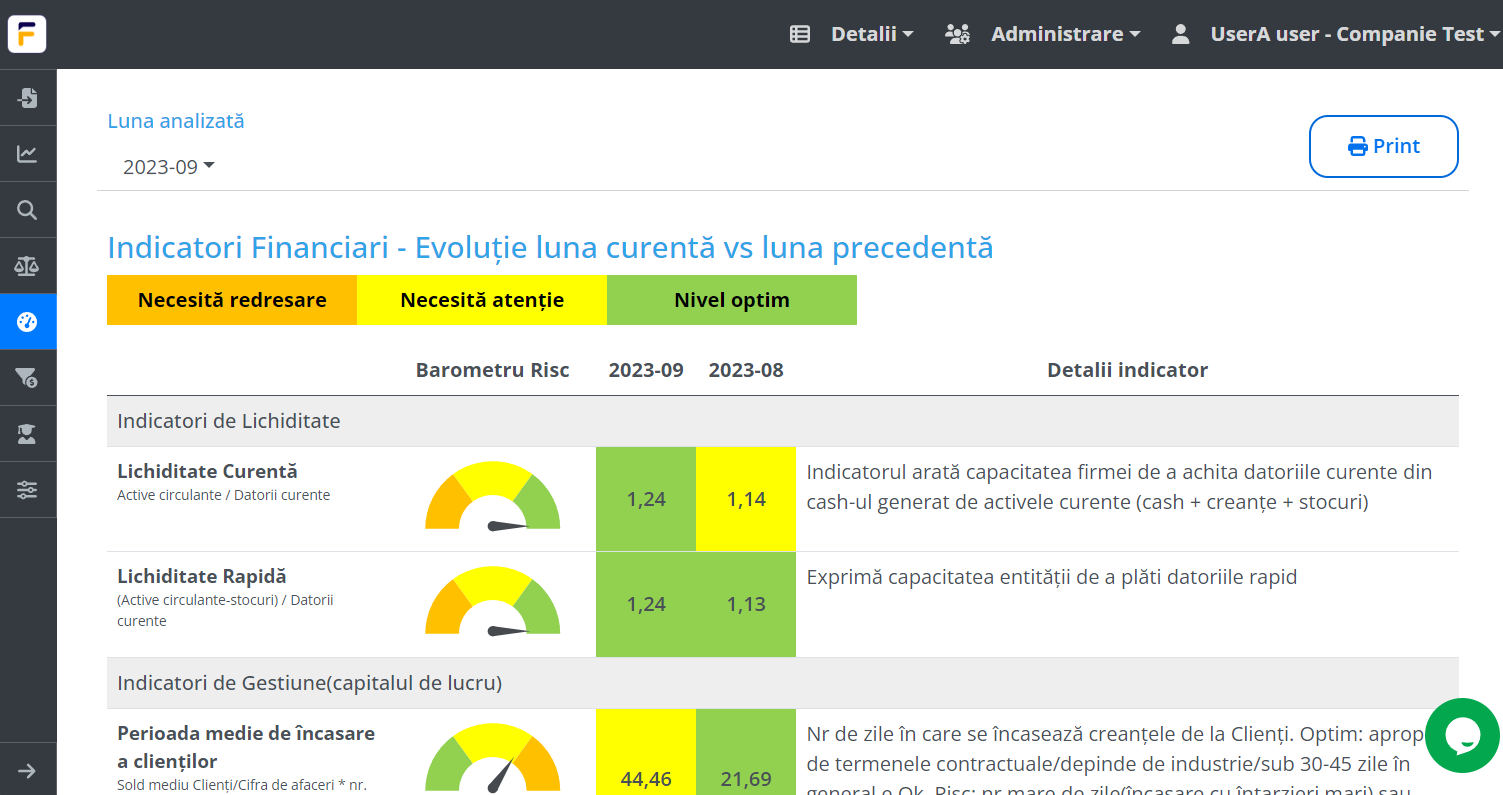 • Indicatori Financiari: Verifici rapid starea de sanatate financiara a firmei si iei masuri atunci cand indicatorii indica o situatie de risc.