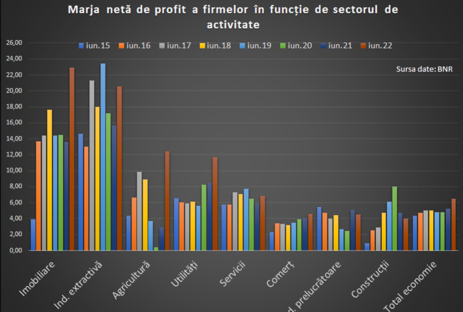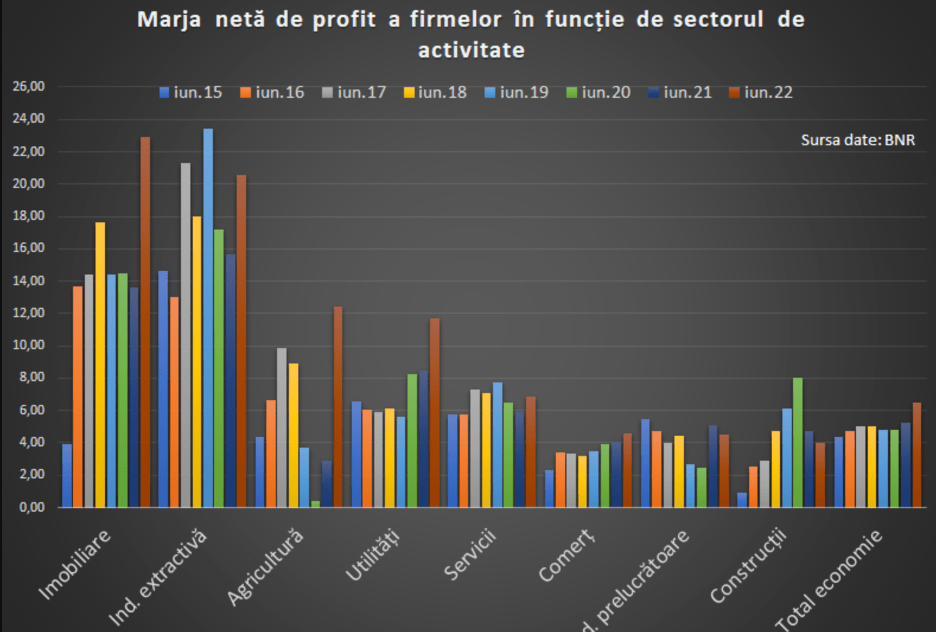 Am gasito statistica interesanta publicata de cei de la Profit.ro AICI care ne arata marja profitului net procentuala in functie de sectorul de activitate si cum a evoluat aceasta din 2015 pana in 2022.